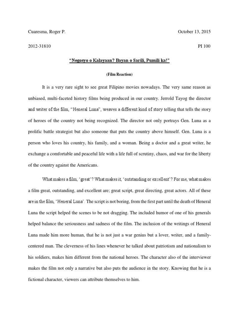 It is about the beginning of hostilities with the American colonizers. Pumili ka Ano ang mahihinuha sa pahayag na ito. When I watched the trailer of the newest biopic about General Antonio Luna on YouTube I told myself to view it once it went out on September 9th this year.